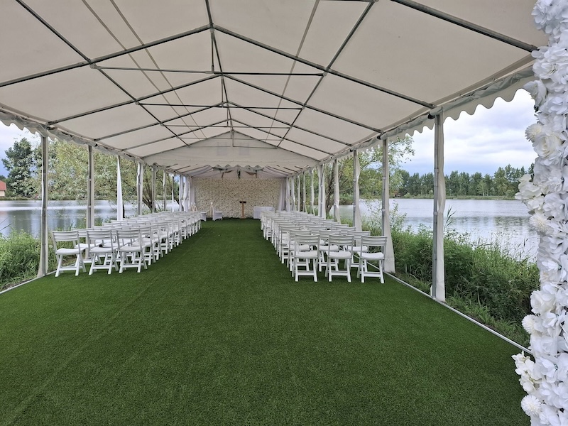 Képzelje el, ahogy a naplemente fénye aranyszínűre festi a tó vizét, miközben kimondja a boldogító igent. Tóparti esketőhelyünk nemcsak gyönyörű, hanem teljes mértékben testreszabható is. A természet közelsége és a különleges dekoráció harmóniát teremt, amely tökéletes hátteret biztosít a ceremóniához.