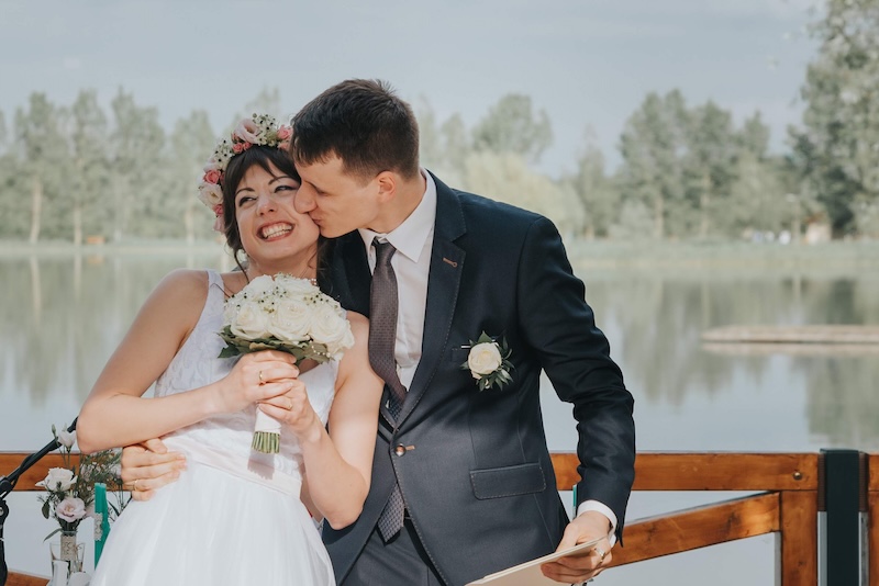 Mondja ki az igent a tóparti naplementében, amely varázslatos hangulatot teremt.